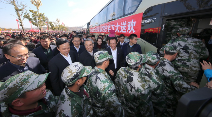 开工仪式结束后,经过恒大职业技能培训的大方县3105名贫困家庭务工人员,乘坐48辆包车奔赴恒大各下属企业和战略合作企业就业。马飚、周伯华、李成玉、许家印、陈敏尔、孙志刚等领导为这些即将奔赴恒大就业的务工人员送行,并看望了受救助孤儿及特困群众。据了解,这些孤儿为许家印、夏海钧等恒大高层结对救助对象,将获得生活、教育等方面的全方位帮扶。