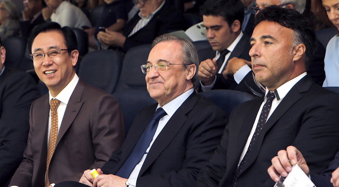 许主席在弗洛伦蒂诺的陪同下观看皇马比赛