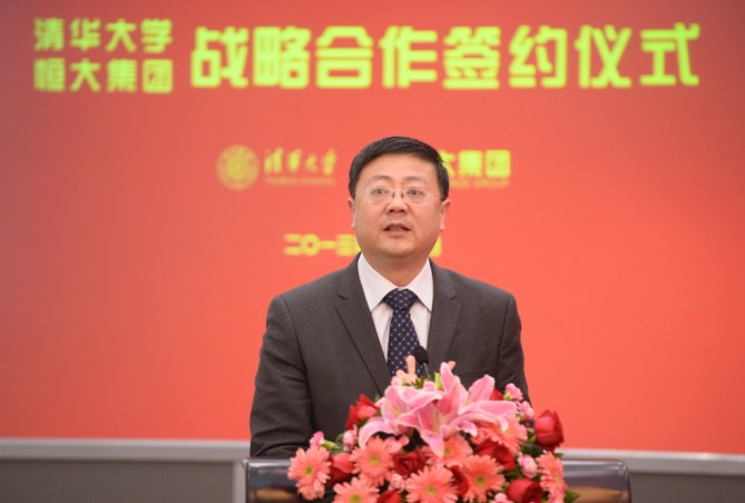 多年来,恒大以合作为基础,以共赢为纽带,矢志打造世界一流企业,为社会发展、国家强大贡献力量。今天,恒大万分荣幸,与清华大学达成战略合作。据我所知,在世界范围内,与清华达成如此全面、深入、持久的战略合作的,恒大是第一家。为此,我们深感荣幸和骄傲。